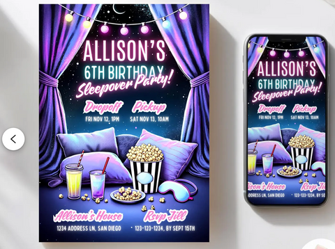 Sleepover Birthday Invitation, Girls Night Slumber Party Sleep Over, Digital Template, Editable Invite, Instant Download, Printable Card